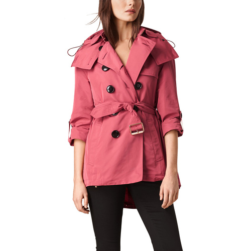 BURBERRY/博柏利 2016年秋冬款双排纽扣开襟 可拆式连帽长袖 防雨Trench风衣 女士外套 #4023174