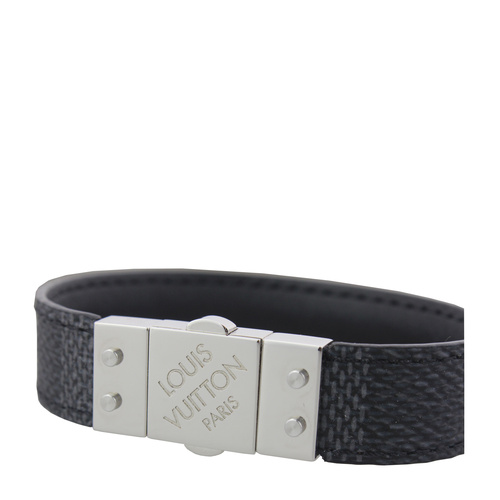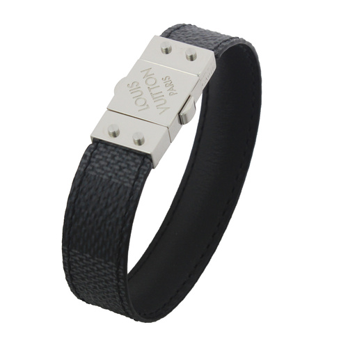 Louis Vuitton/路易威登 男士CHECK IT系列黑色棋盘格手环M6606D21号