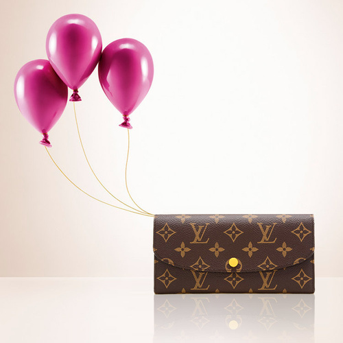 Louis Vuitton/路易威登 女士老花帆布芭比粉色EMILIE 钱包 M61289