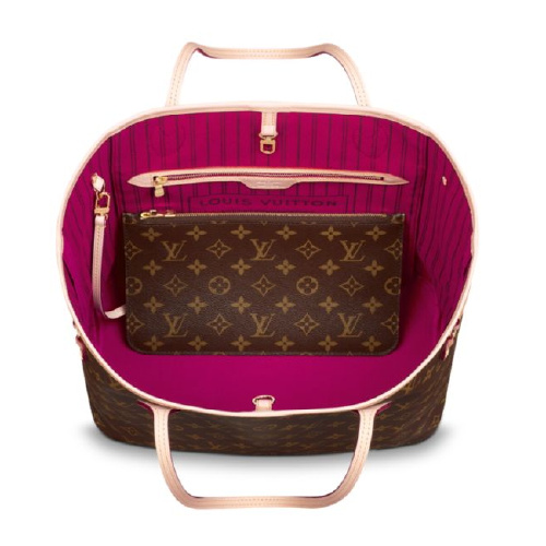 Louis Vuitton/路易威登 女士购物袋 帆布/配皮 Neverfull中号单肩包M41178(配玫红色同款手包)
