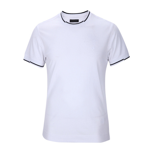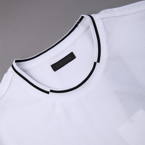 ERMENEGILDO ZEGNA/杰尼亚白色纯棉条纹领边男士T恤(短袖),VI340 N00,XL