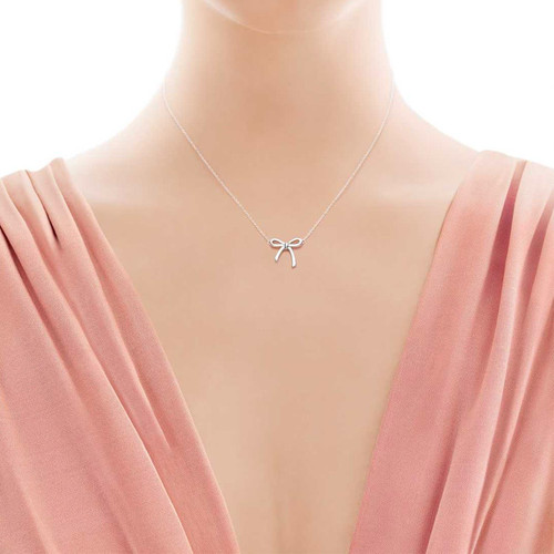 Tiffany & Co./蒂芙尼 纯银小号蝴蝶结吊坠配16英寸项链