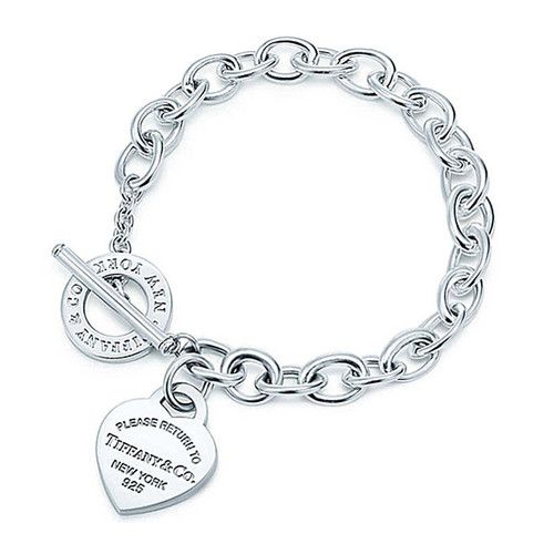 Tiffany & Co 蒂芙尼 心形吊牌针扣银饰手链 161031