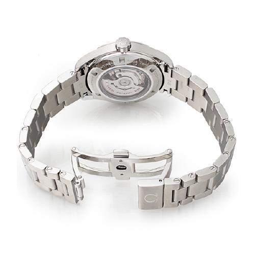 机芯:欧米茄8520机芯,备有同轴擒纵装置的自动上链机芯,确保稳定持久的精准计时。硅质无卡度游丝摆轮,双滚筒,双向自动上链,减少上链时间。桥板及摆动组件有阿拉伯式日内瓦波纹装饰。