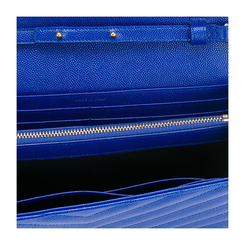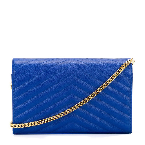 Yves saint Laurent/圣罗兰 'Monogram'金属品牌logo蓝色斜纹小牛皮女士信封式单肩包#377828 BOW01 4350