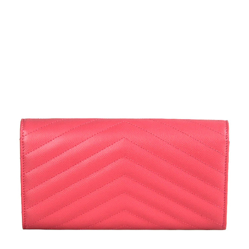 Yves saint Laurent/圣罗兰 金属logo标粉色牛皮斜纹女士长款钱包 #372264 BOW01 6618
