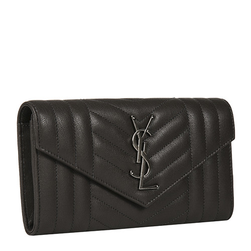 Yves saint Laurent/圣罗兰 16秋冬牛皮长款YSL LOGO按扣女士钱包 437469BRM04
