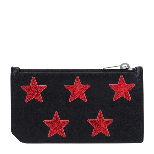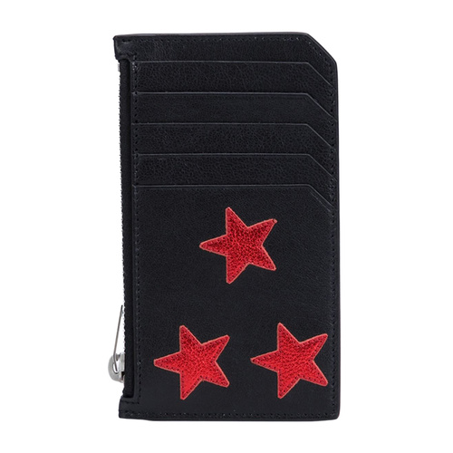 Yves saint Laurent/圣罗兰 红色星星贴花黑色牛皮中性款式小型皮具零钱信用卡包#417751 CU0C6 1091