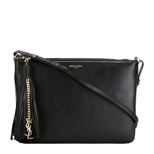 Yves saint Laurent/圣罗兰 流苏带金属YSL链条挂饰小牛皮女士单肩包#412674 CWU0J 1000