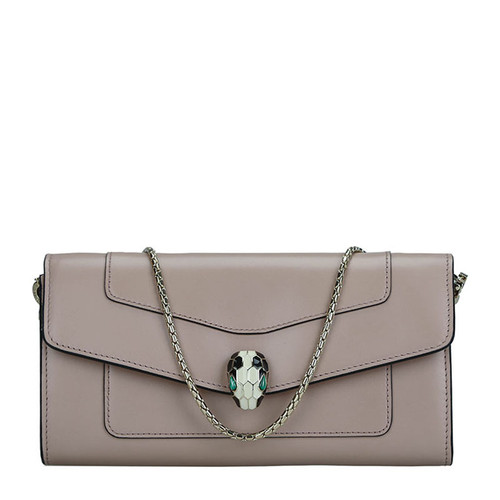 BVLGARI/宝格丽 长款女士SERPENTI小牛皮翻盖链条钱包 280467 黑色