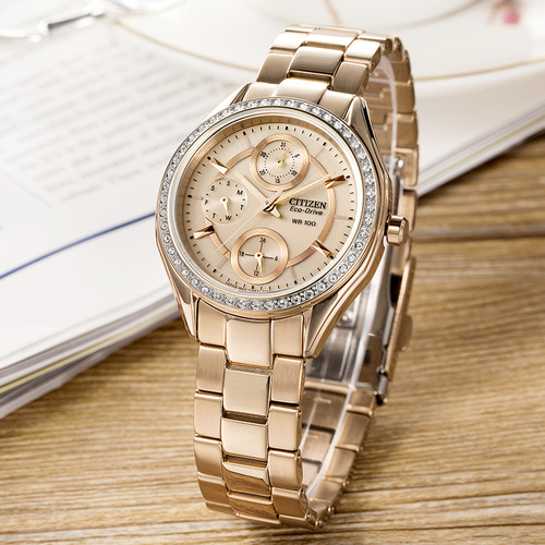 Citizen/西铁城 光动能玫瑰金大表盘计时男表CA4213-00E