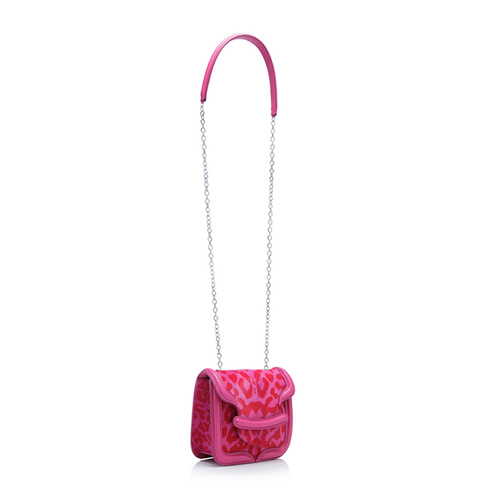特征 小牛毛和真皮边饰银色配件 链式和真皮肩带 磁性子母扣关闭 内饰 麝皮内里 1个防滑口袋凹陷的设计标志尺寸:长 16.5cm 高 15cm 宽 6.5cm 肩带带长 54cm