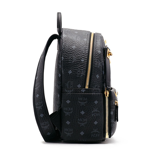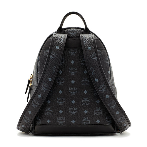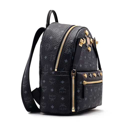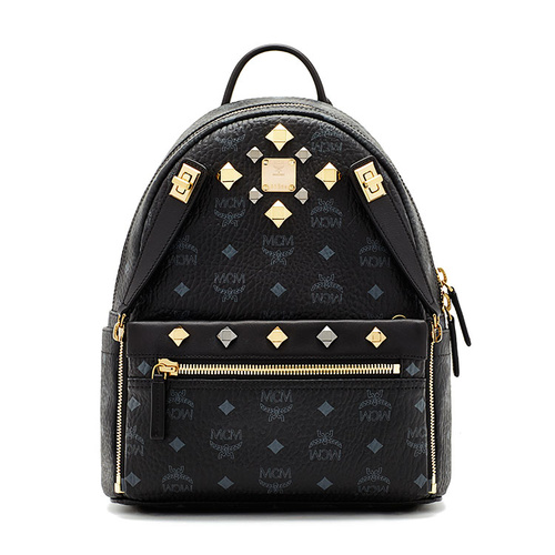 MCM/MCM Dual Stark系列Visetos牛皮铆钉中性款式里衬小牛皮小号黑色双肩包#MMK6SVE80 BK001