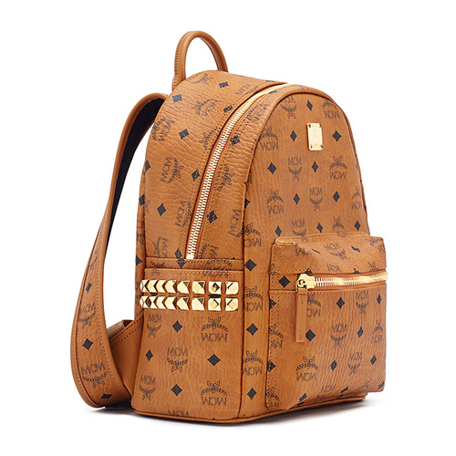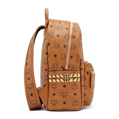 MCM/MCM Stark系列 品牌印花图案棕色中性款式里衬小牛皮中号双肩包#MMK6SVE37 CO001