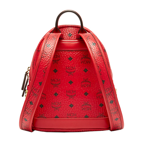 MCM/MCM STARK BACKPACK系列品牌标志图案金属铆钉装饰红色PVC涂层里衬小牛皮女士迷你双肩包#MMK6AVE41 RU001