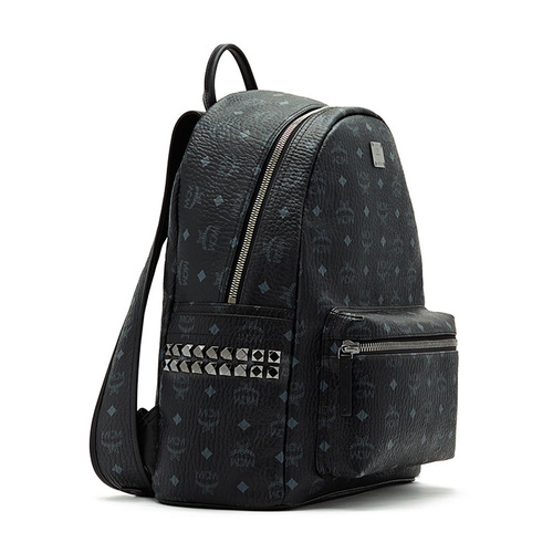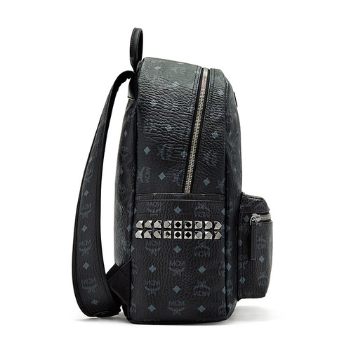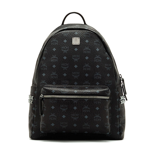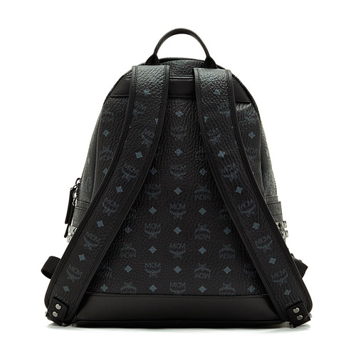 MCM/MCM Stark系列Visetos涂层帆布中号黑色小牛皮中性款式里衬小牛皮双肩包#MMK6SVE38 BK001