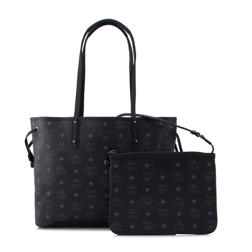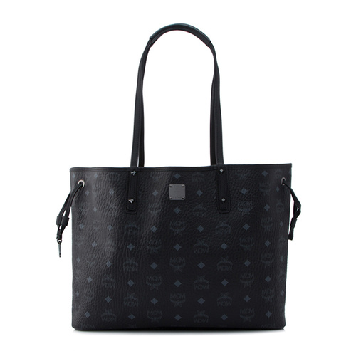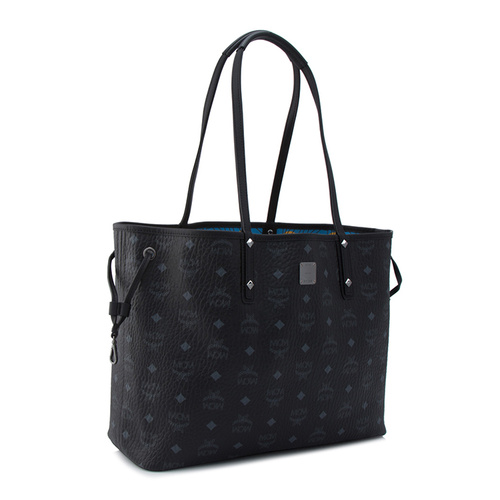Why buy just one bag when you can buy two? This delightful and spacious MCM shopper can be reversed to a muted print for low-key days. Exterior - Designer visetos coated canvas body with leather trim - Gunmetal tone hardware - Double shoulder straps - Open top - Side drawstring pulls - 2 protective leather feet - Designer plaque - Reversible Interior - Printed fabric lining - Debossed designer label - 1 lobster clasp - Detachable zipper pouch with convertible top handle - 2 protective leather feet