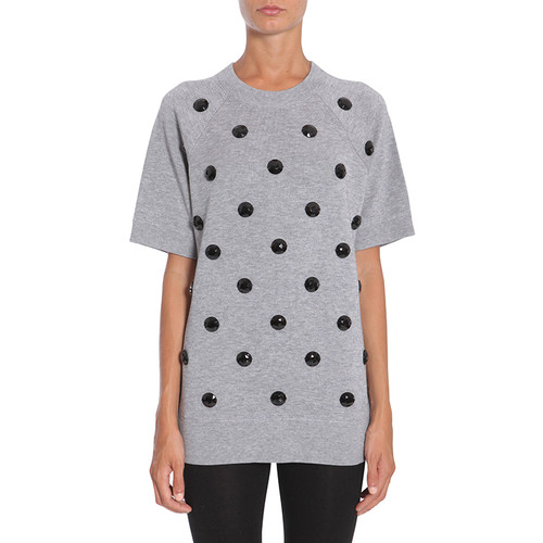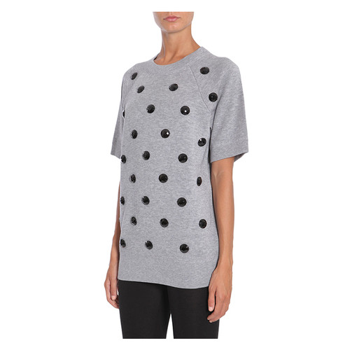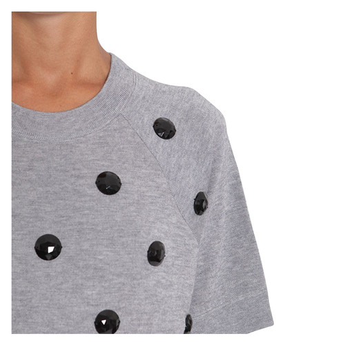 女士(40%棉/39%黏胶/12%尼龙/9%羊毛)短袖T恤,圆形凸起装饰,时尚新潮,舒适大方,彰显时尚品味