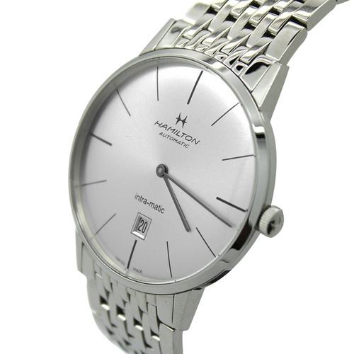 商品型号 H38755151 机芯类别 机械-2892 表盘直径 42mm 表盘颜色 银色 表镜材质 蓝宝石水晶玻璃 表带颜色 银色 表带材质 316L不锈钢 表扣类型 蝴蝶扣 显示功能 日历 防水功能 50米