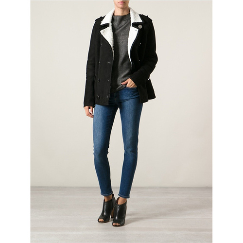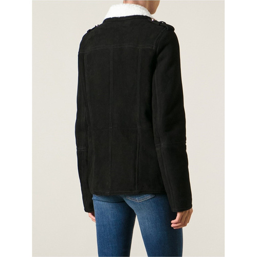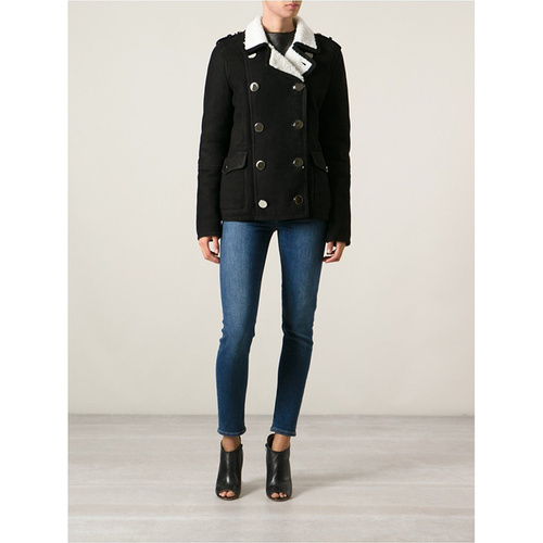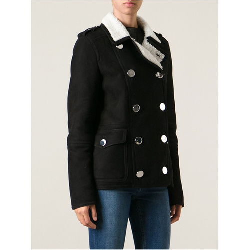 时尚双排扣女士(100%羊皮)外套,产地:意大利,绒毛领装饰彰显时尚。线条流畅彰显苗条身材