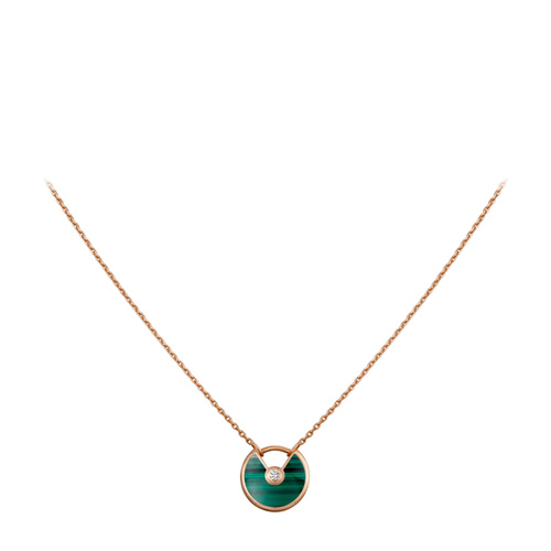 CARTIER/卡地亚 AMULETTE DE CARTIER系列18K玫瑰金镶嵌钻石孔雀石 挂锁设计超小号项链挂坠 B7224550