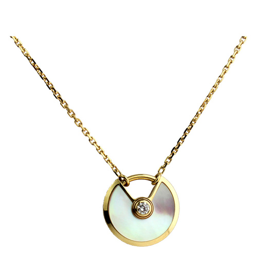 CARTIER/卡地亚 AMULETTE DE CARTIER系列18K黄金镶嵌钻石珍珠母贝 挂锁设计超小号项链挂坠 B3047100