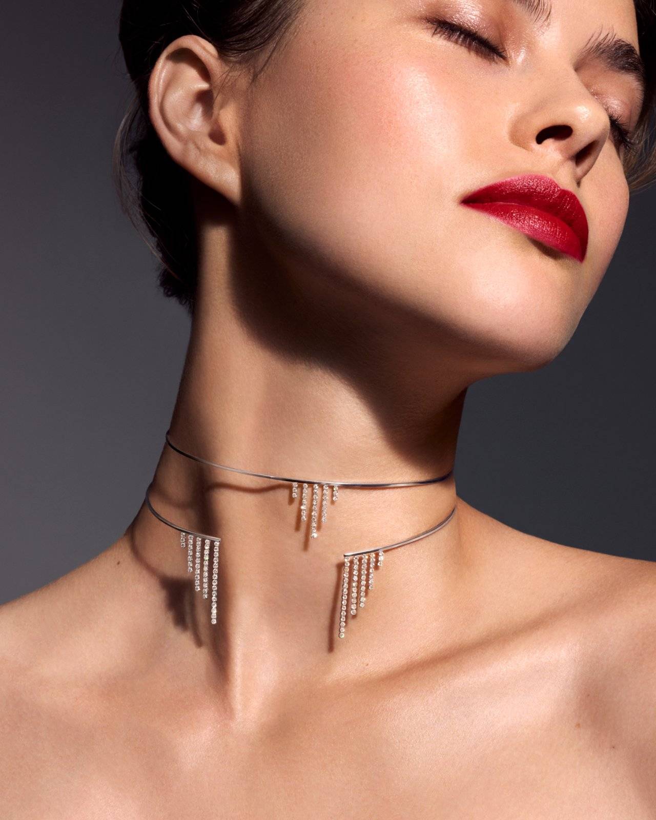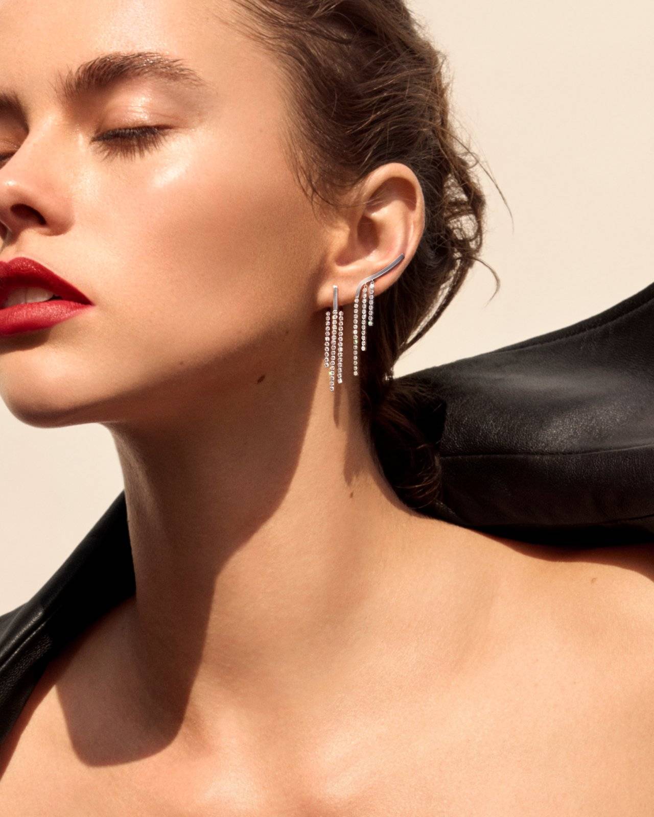 AHKAH标志性chandelier系列从水晶吊灯投射的璀璨光芒与迷人光影交织中汲取灵感,将优雅与感性淋漓尽现。如今,备受喜爱的chandelier系列与chandelier layered系列迎来全新铂金作品,以多样化的璀璨新姿绽放光彩。