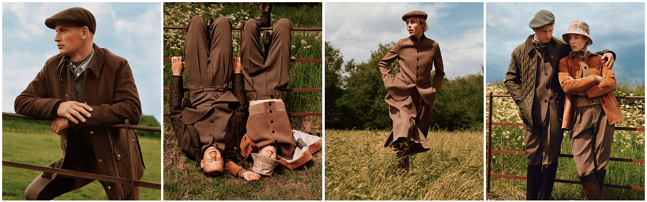 此次胶囊系列涵盖男女装,凝聚出一种独特的隽永优雅风格。服装的廓形、图案与色彩皆与苏格兰高地的苍茫景致和诗意氛围相映成趣。苔藓绿到深褐色的渐变构成了男装系列的主色调,而女装系列则以大地色为基调,点缀以金雀花盛开的赭黄微芒,以及铜橙色的细腻笔触,生动勾勒出高地迷人的秋日景致。