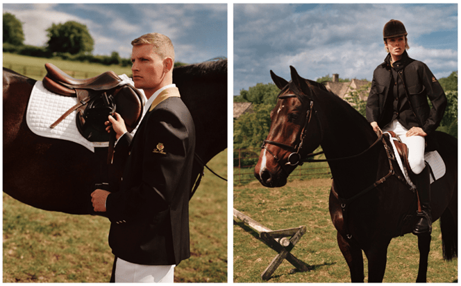 该系列服饰的设计灵感源自品牌对马术美学的着迷。整体廓形修长而富有层次感,以高腰裤装勾勒身形,时而宽松飘逸,时而又如同标准马术装般利落,展现腿部线条。剪裁考究却不失松弛感,奢华中巧妙平衡了刚毅与柔美风格,兼具高品质、实用功能与舒适度。标志性 Horsey® 外套选用三层面料——亚麻、桑蚕丝和 Loro Clan 格纹图案针织布制成,女款采用简洁的短款设计,男款则经焕新演绎,配以英伦风衬衫领,外领精选 Cash Suede 小牛皮制成,点缀灯芯绒图案,打造撞色效果。