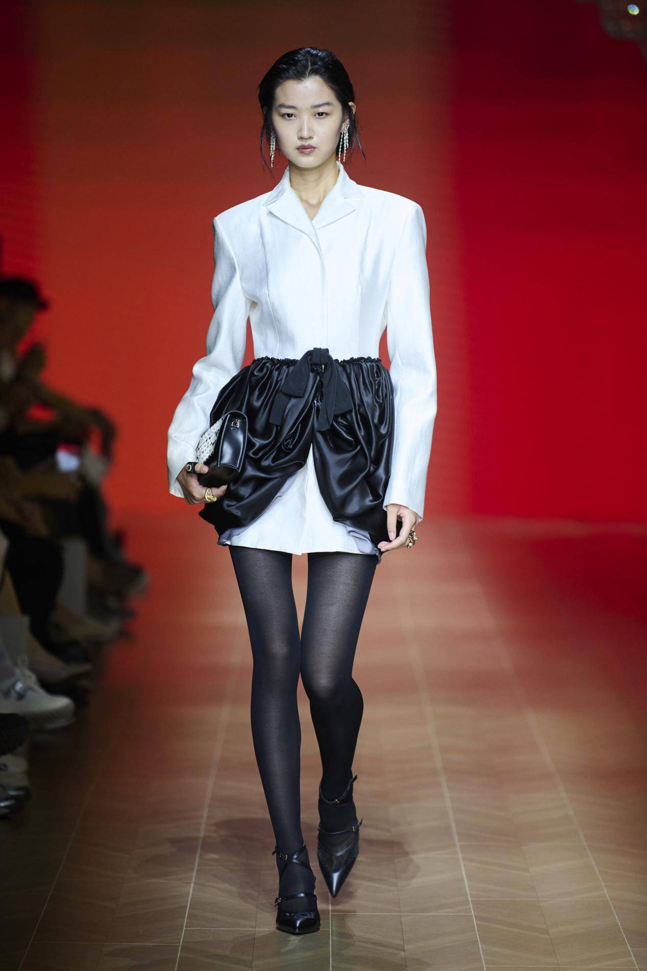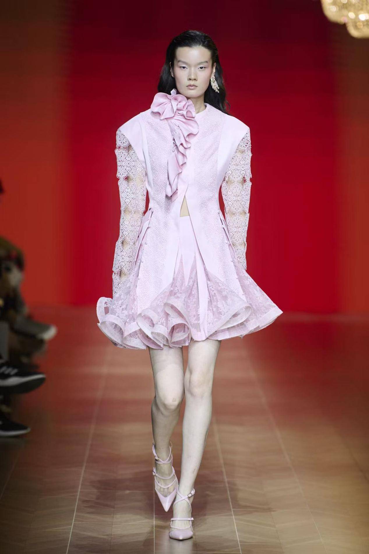 伴随着Cucurrucucu Paloma的旋律,华丽吊灯映照出古典浪漫的氛围,木质地板隐约散发出别样幽香。故事感倾泻而来,开启了品牌CHEN.1988多维的叙事重构。本季色彩不止服务于视觉,更接近情绪表达,陈龙以嫩粉、渐变、跳动的波感来构建全新的色彩谱系,脱胎又区别于之前的用色克制,理想之秋是沉淀于爆发之后的自由步调,为26春夏“腾挪”出让人暗赞的创作空间。