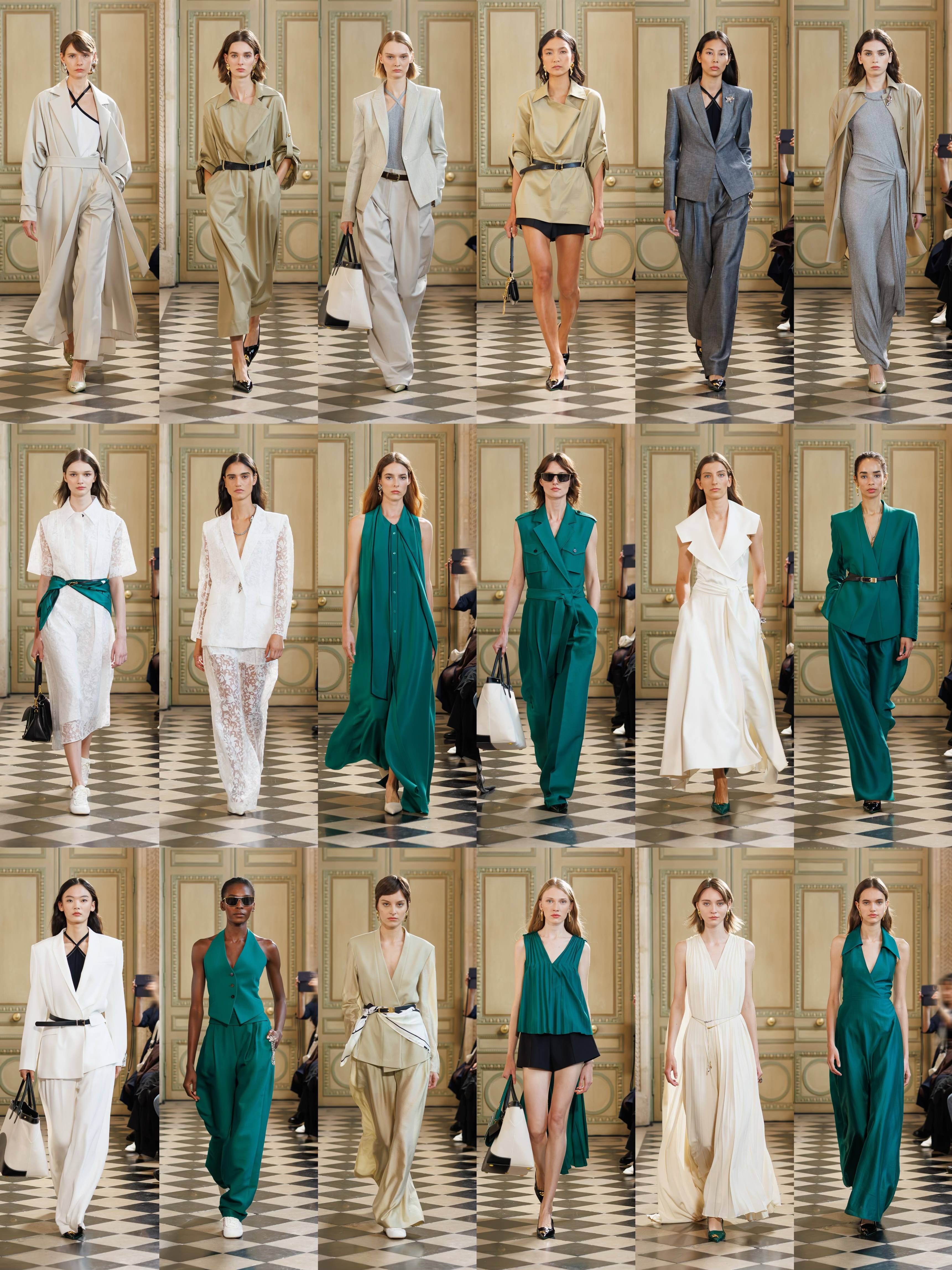 大秀以木兰的生命史诗为轴,精心铺陈四个华章: “种子” 章节以大地色系为主,仿佛木兰花的种子在大地之中静默蓄势,蕴含着无限的生命力;“生长” 章节则展现了木兰花历经风雪逆境,在早春绽放出第一抹新色的坚韧与希望;“绽放” 章节中,色彩转向NEXY.CO(奈蔻)标志性的“奈蔻绿”色,服装如同蓬勃盛放的木兰花,每片 “花瓣” 都举着光,尽显绚烂与张扬;“轻飏” 章节则描绘了风起时,木兰花瓣纷飞的画面意向,灵动而飘逸。每一刻 “木兰” 的生长,都在解构时间的维度,时装成为时光的容器,盛载着智美女性与时间共生的矜贵,以木兰之姿,将每一段岁月都酿成专属的奢华时境。