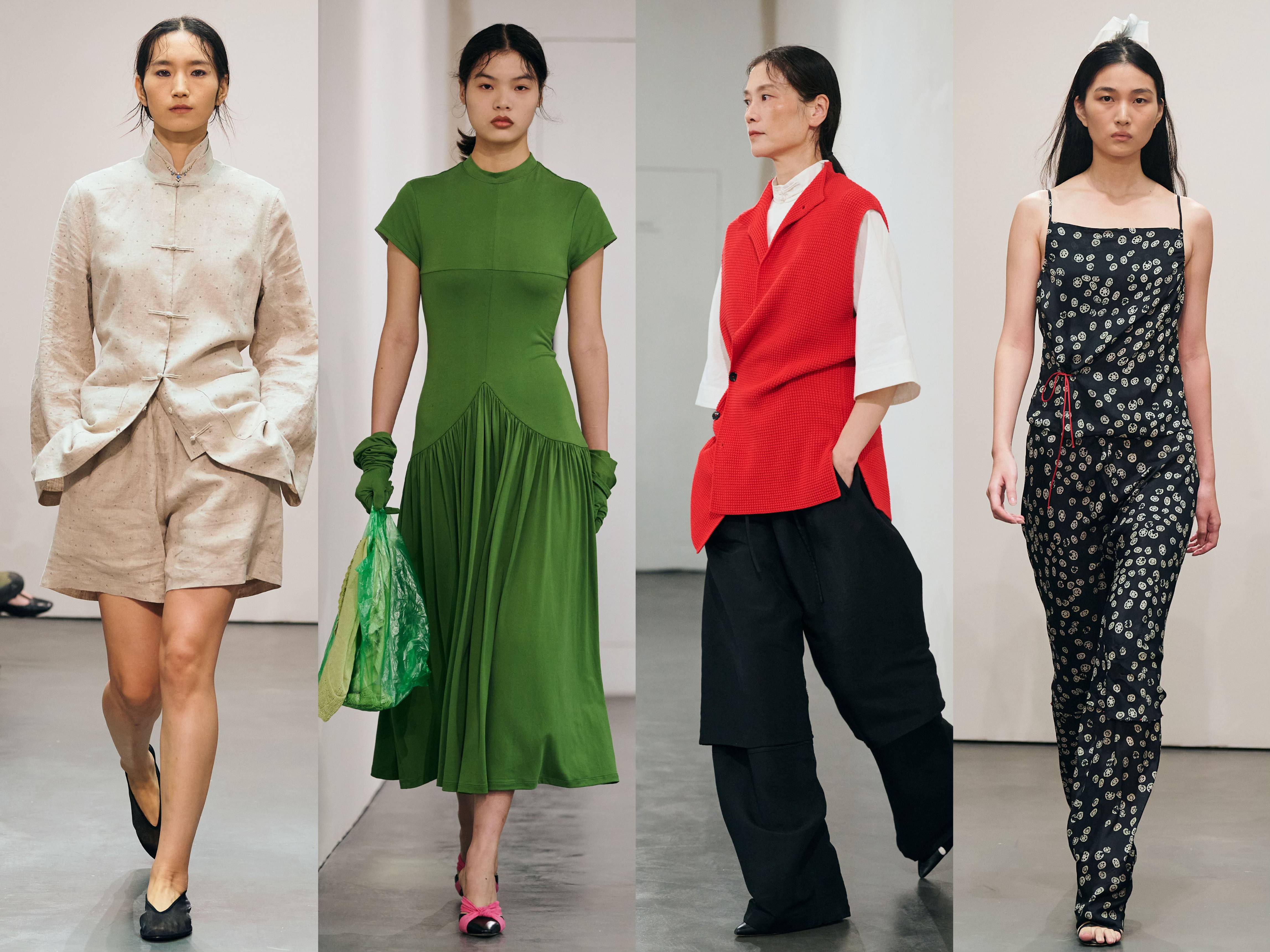 春夏新季印花续写自然意象,“红花”、“绿漾”、“钱藕”、“籽花” —— 兼具中西美学与利好寓意。圆形拼接版型细节,象征着满月与轮回,映射月引潮汐主题。秀场系列更有多样材质,天然丝麻、环保纤维、橡胶元素、年代面料……亦旧亦新,混合成趣。