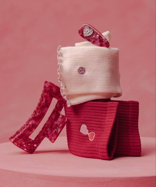 另有多款配饰萦绕浪漫气息,可随心搭配,如镂空爱心点缀的运动帽、玩趣自成的爱心钥匙扣、小巧别致的发夹与舒适随行的袜子,让爱意渗透于日常瞬间,享受仪式感带来的愉悦相伴。